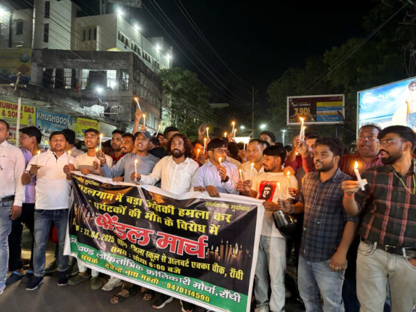 Ranchi : जम्मू-कश्मीर के बाइसारन घाटी, पहलगाम में हुए भीषण आतंकी हमले के विरोध में राजधानी रांची में “झारखंड लोकतांत्रिक क्रांतिकारी मोर्चा” की अगुवाई में बुधवार को एक कैंडल मार्च सह श्रद्धांजलि सभा का आयोजन किया गया। हमले में 26 पर्यटकों की मौत और दर्जनों के घायल होने की खबर ने देशभर में शोक और आक्रोश का माहौल बना दिया है।